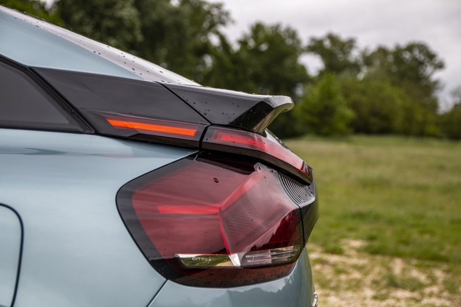 Az autó hátulja jól néz ki a nagy műanyag elemekkel és ezekkel a lámpatestekkel, ugyanakkor a hátsó ablak közepén vízszintesen húzódó légterelő a tesztidőszak elején zavaró volt, aztán megszokja az ember. Elsőre nem is gondoltam, hogy ez a méretes, 1616 kg-os autó 0,29-es alak tényezővel bír, ami nagyon jó.