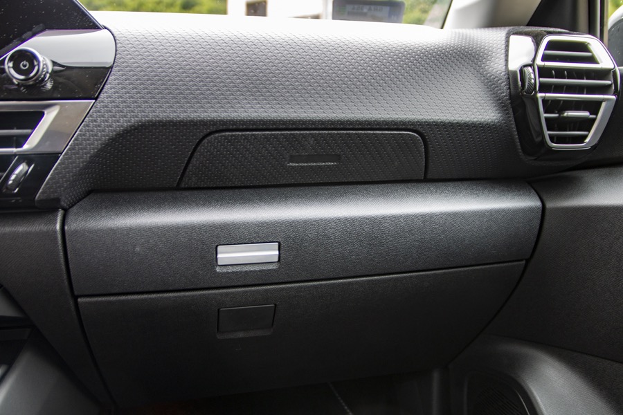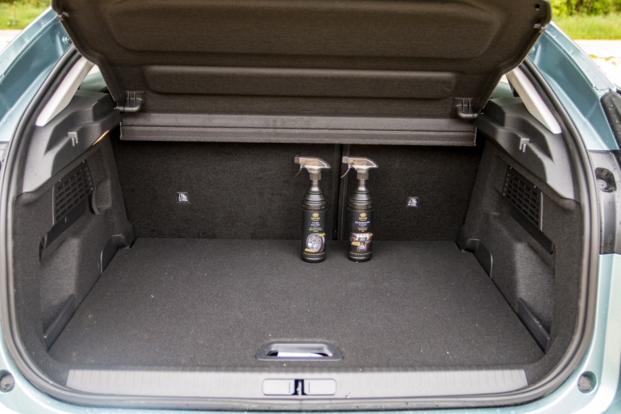 A jobb első ülés előtt található egy tablettartó, egy A4-es méretű irattartó fiók és egy mezei kesztyűtartó. Az első ülések fotelszerűek, és mivel nem vagyok nagy darab, így kicsit kényelmetlen volt, hogy szinte 0 oldaltartása van a sofőr ülésének, viszont cserébe az ülésmagasság és pozíció nagyon tág tartományban állítható. A tesztautóban nem volt ülésfűtés, ez most nem hiányzott, de télen mondjuk gazdaságosabb és komfortosabb lenne. A hátsó ülések is kényelmesek, bár lehajtható könyöklő nincs, az viszont fontosabb, hogy fej és lábtér van bőven. A számtalan rekeszbe és tárolóba sok kisebb kacat elrakható, a 380 literes csomagtartóba pedig minden más elfér, aminek az utastérben nem találtunk helyet. A csomagtér ajtaja többször megviccelt, mivel próbáltam nem ólajtósan lecsapni, ezért párszor nem is záródott be rendesen, aztán jött a visszajelzés…